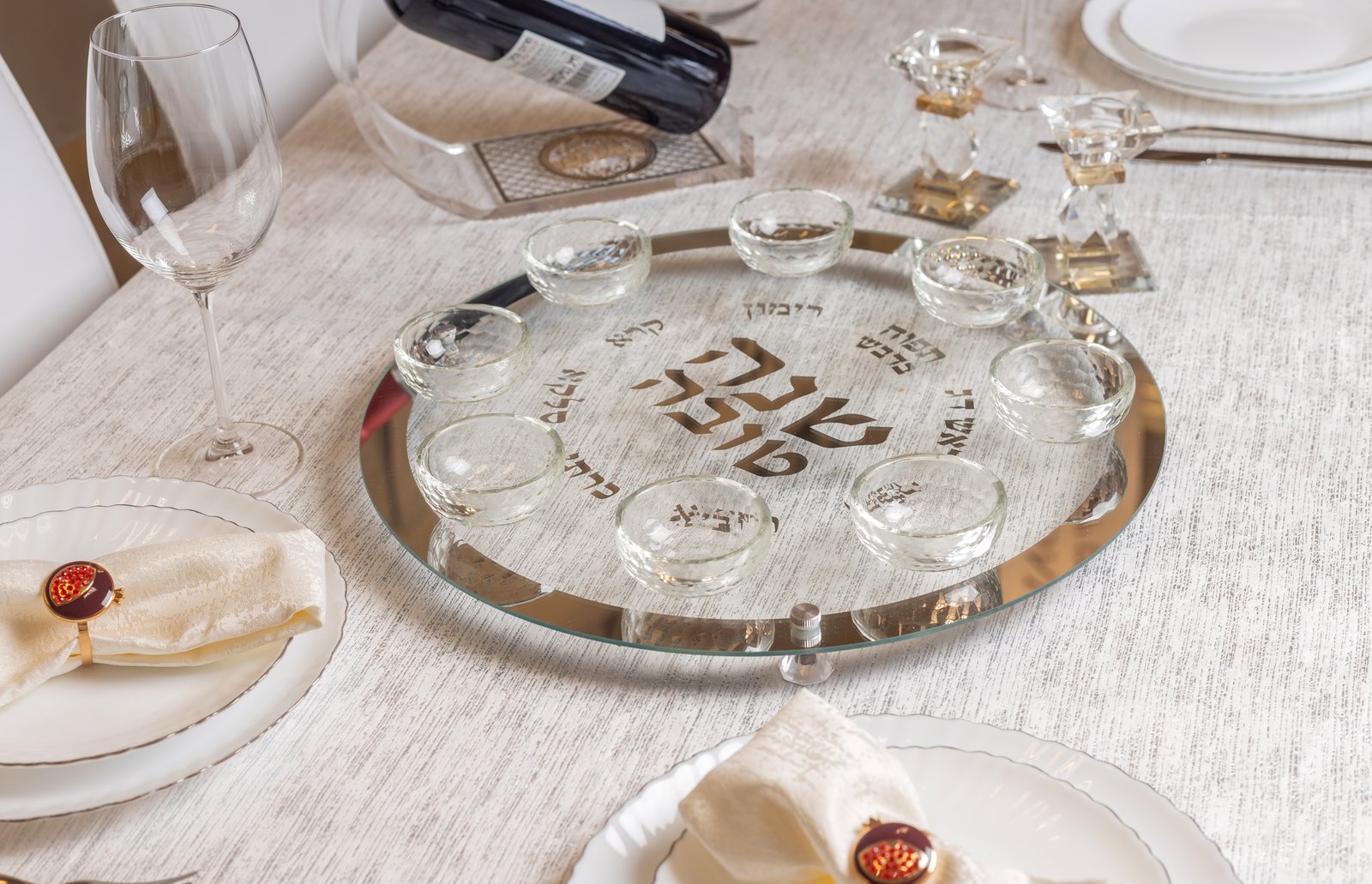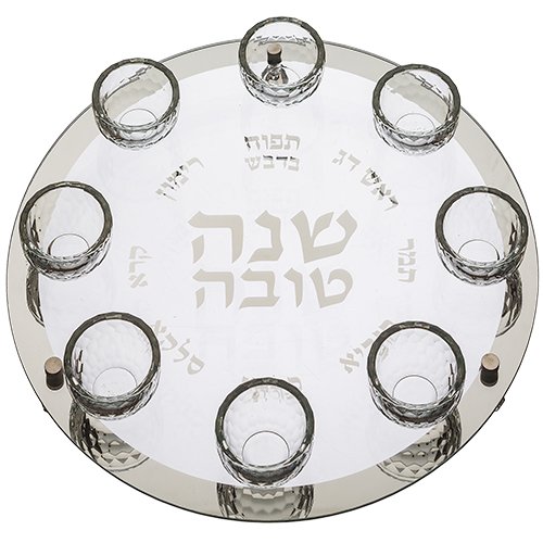 צלחת עגולה מהודרת לראש השנה מזכוכית וקריסטל עם אבנ