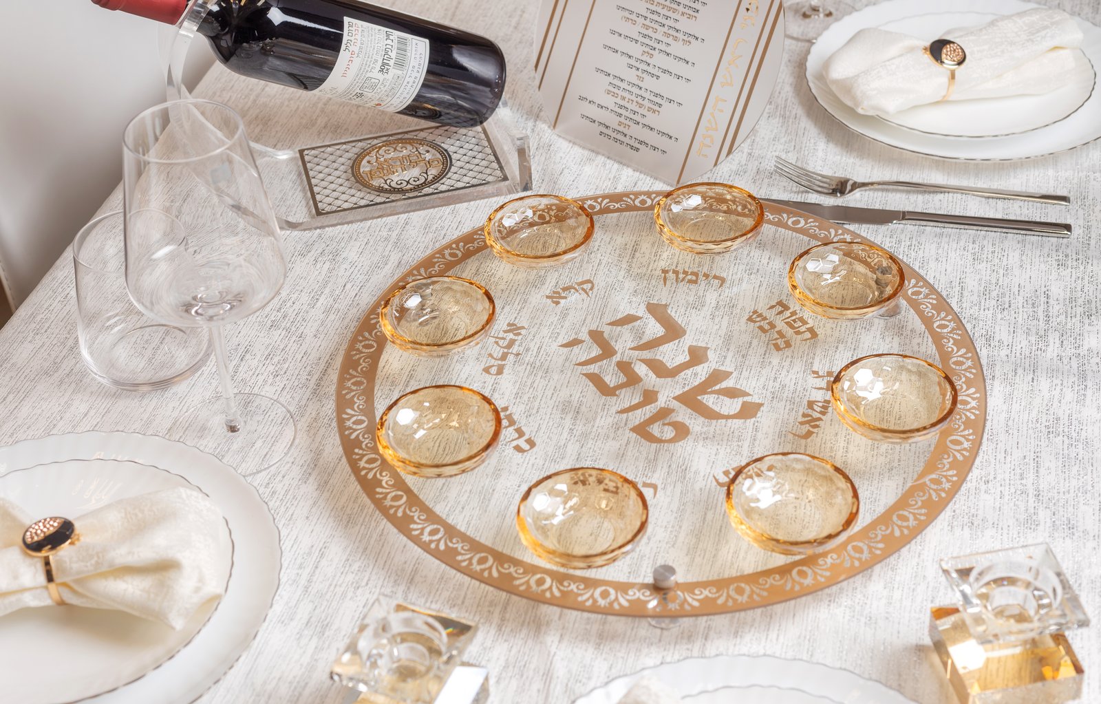 כמות של צלחת עגולה מהודרת לראש השנה מזכוכית וקריסטל 40 ס"מ