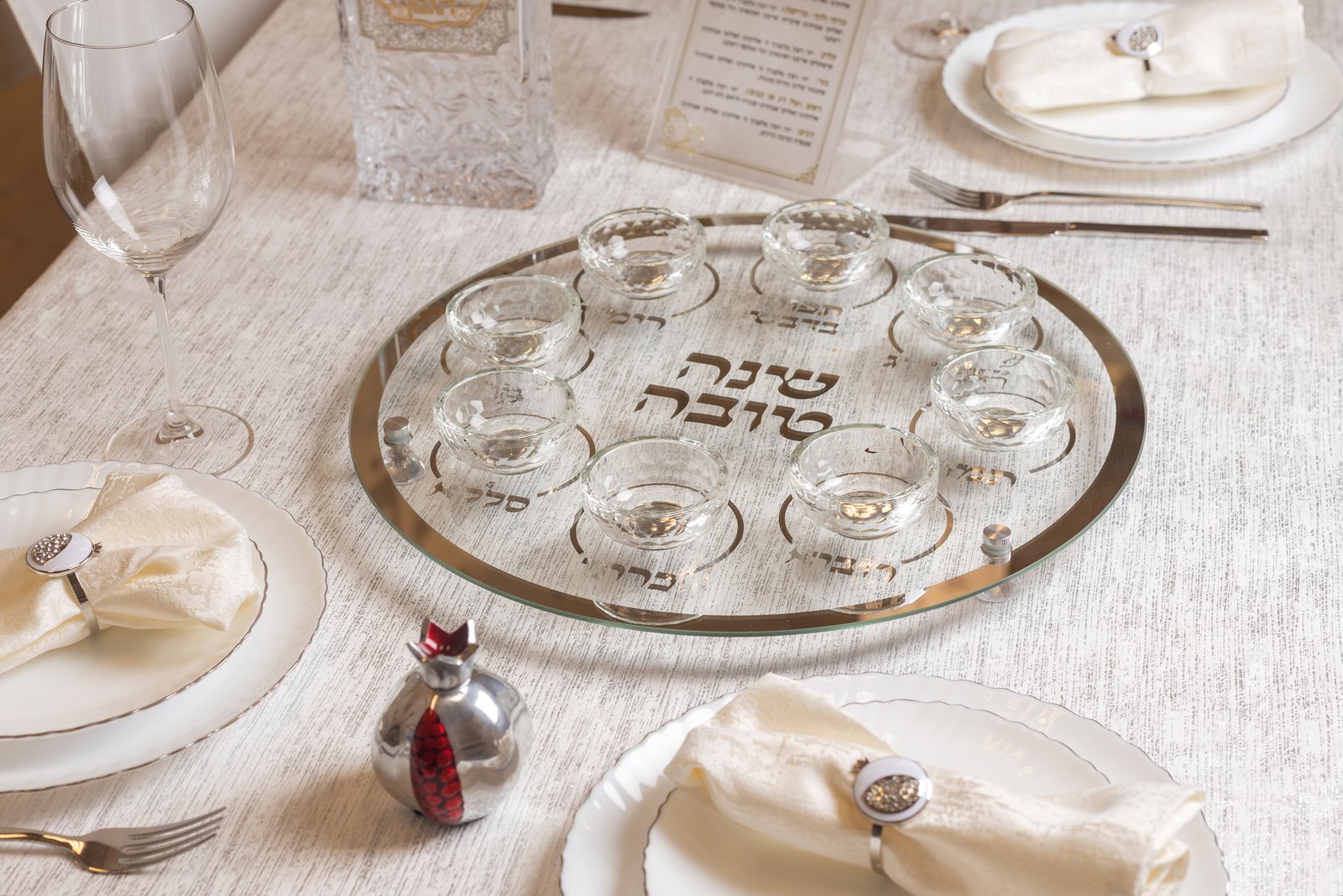 כמות של צלחת עגולה מהודרת לראש השנה מזכוכית וקריסטל 40 ס"מ