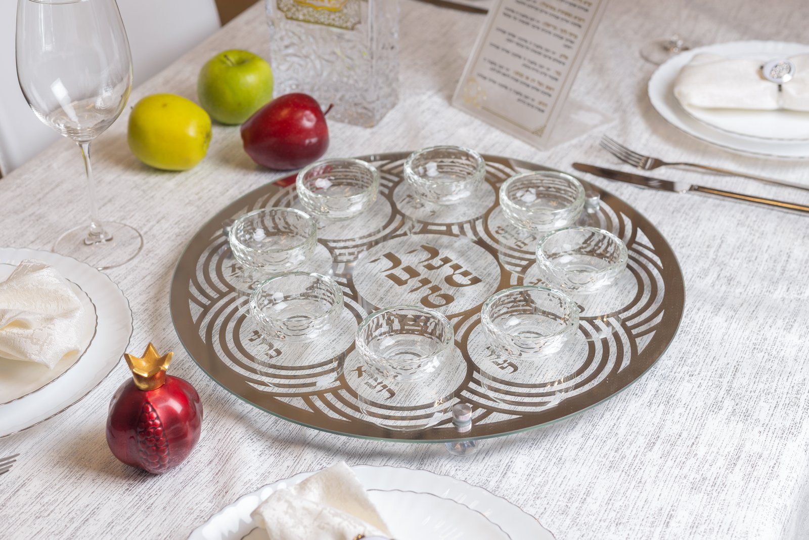 כמות של צלחת עגולה מהודרת לראש השנה מזכוכית וקריסטל 40 ס"מ