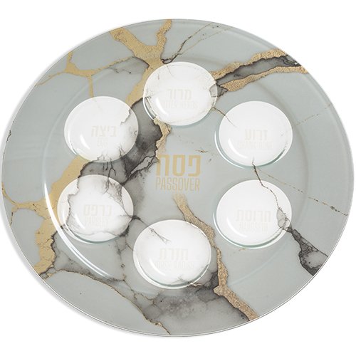 צלחת פסח מזכוכית עם הדפסה 35 ס"מ