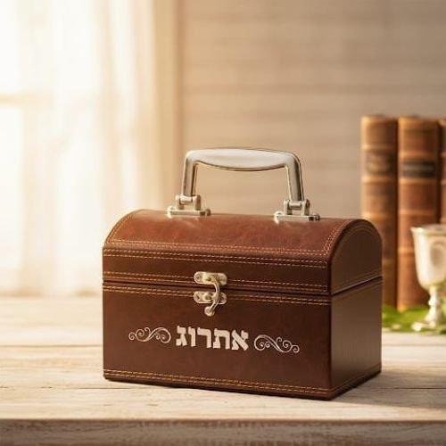 קופסא מהודרת לאתרוג דמוי עור עם ידית ומנעול 13*19*11 ס"מ