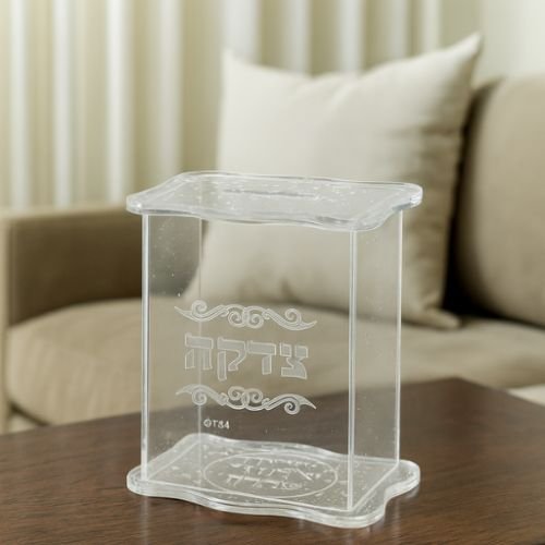 קופת צדקה פרספקס נצנצים כסף עם הדפסה 16 ס"מ