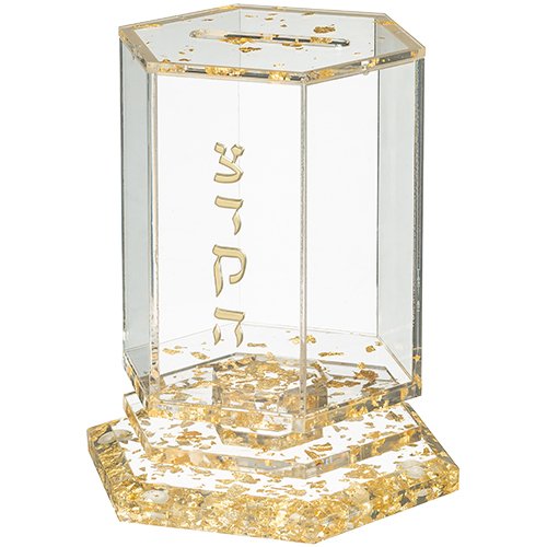 קופת צדקה קריסטל עם פלקטות זהב 9*13 ס"מ