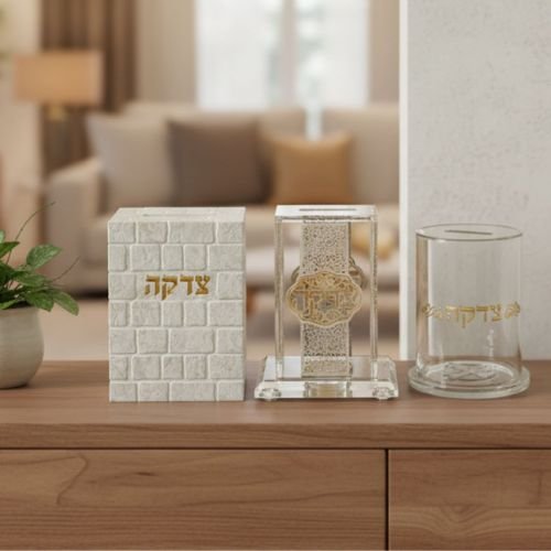 קופת צדקה קריסטל עם פלקטות 11.7X16 ס"מ