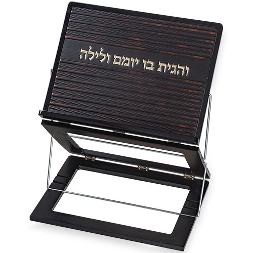 שטנדר מהגוני מהודר עם פלקטה דמוי עור "והגית בו"