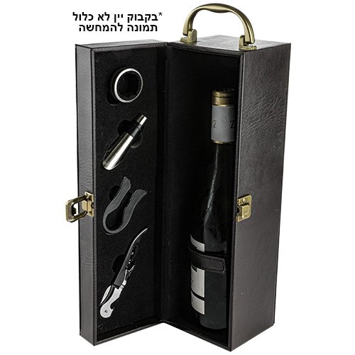 תיבה דמוי עור ועץ לבקבוק יין כולל סט אביזרים 11×35 ס"מ