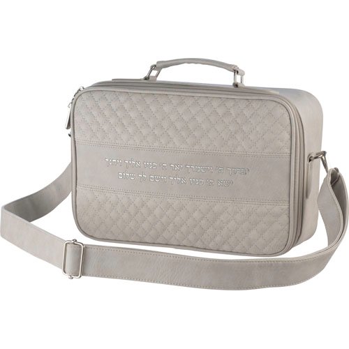 תיק מפואר לטלית דמוי עור לבן אותיות בולטות "ויברכך" כסף 31*38 ס"מ