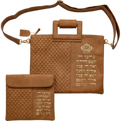 כמות של תיק טלית תפילין מהודר דמוי עור קאמל אותיות בולטות יברכך 3831סמ
