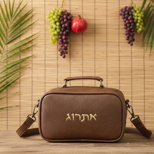 סט נרתיקים מהודרים ללולב ואתרוג דמוי עור חום 116×19 ס"מ