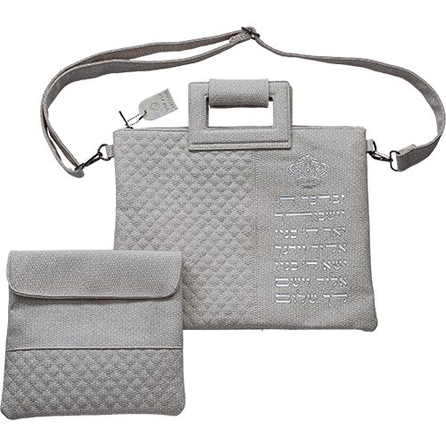 תיק מפואר לטלית דמוי עור אותיות בולטות "יברכך" כסף 31*38 ס"מ