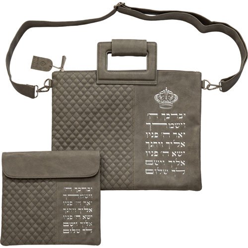 תיק מפואר לטלית דמוי עור אפור אותיות בולטות "יב