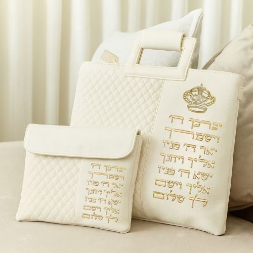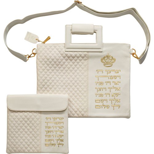 תיק מפואר לטלית דמוי עור לבן אותיות בולטות