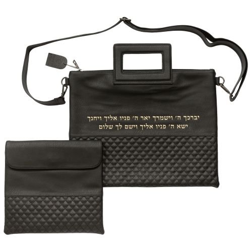 תיק מפואר לטלית דמוי עור שחור אותיות בולטות "ויברכך" זהב 31*38 ס"מ