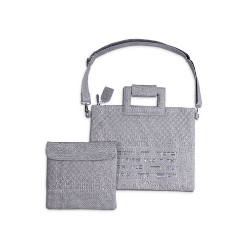 תיק מפואר לטלית דמוי עור אפור עם רקמה "ויברכך" 31*38 ס"מ