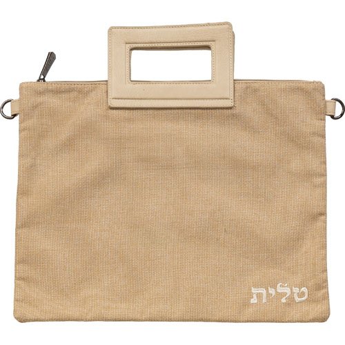 תיק מפואר לטלית פשתן ודמוי עור עם ריקמה 31*38 ס"מ