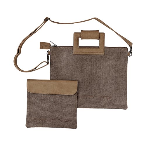 תיק מפואר לטלית פשתן ודמוי עור עם ריקמה 31*38 ס"מ