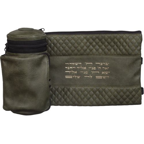 כמות של תיק תפ טרמי דמוי עור ירוק עם אותיות בולטות יברכך 22סמ